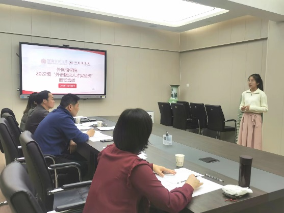 聚焦人才培养,创新外语教育,为培养高质量、高水平、高素质外语拔尖人才,外国语学院于10月30日在会议室成功举办2022级“外语拔尖人才实验班”面试选拔工作。本次面试评委小组由外国语学院相关负责人及各专业系主任担任。