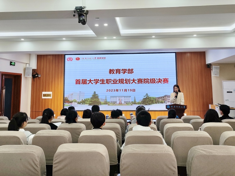 为增强大学生职业生涯规划意识,提高大学生创新创业实践能力,选拔优秀选手参加校级比赛,教育学部于11月19日在田家炳教育书院819会议室举办大学生职业生涯规划大赛。河南师范大学招生就业处副处长宁敏、生命科学学院团委负责人马静潇、2022年大学生职业生涯规划大赛校赛特等奖获得者于佳琪担任此次比赛评委,比赛由学部团委负责人崔新媛主持。