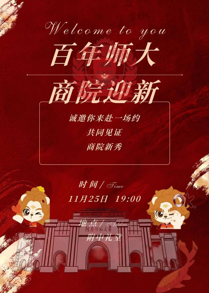 为推动商学院迎新晚会顺利开展,促进学生德智体美劳全面发展,11月12日至20日,商学院举行“迎‘新’聚力,启航新程”主题海报与票券设计活动。同学们踊跃报名参与,反响热烈。