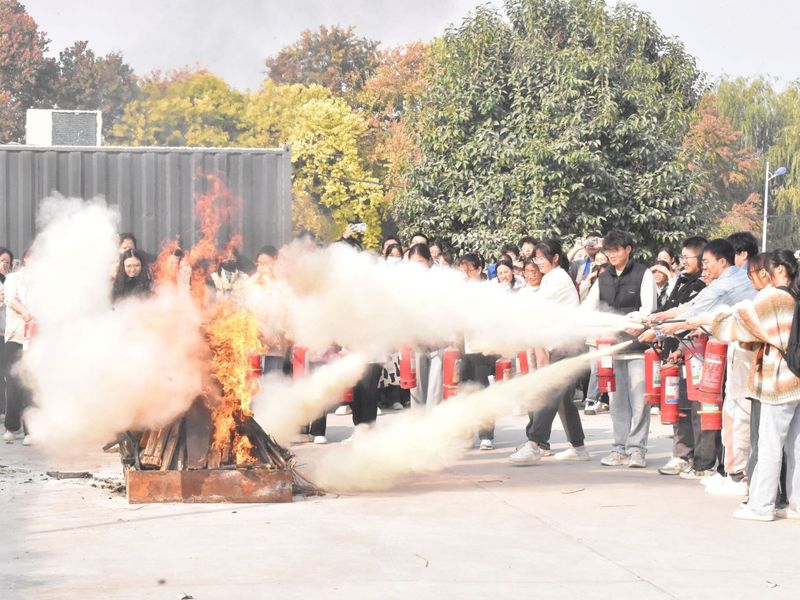 本次活动分为模拟火灾现场逃生和消防器材实操两部分内容,以演教学,以演筑防。火灾模拟舱中刺鼻的浓烟、昏暗的光线、紧张的氛围切实还原了火灾事故现场环境。同学们在工作人员指导下弯腰掩鼻,紧张有序,快速寻找逃生通道,成功脱险。随后,蔡鹏老师全面细致地讲解了消防器材的分类和使用,现场演示了部分灭火器的使用技巧,强调学会正确使用基本消防器材的必要性和重要性。最后,同学们在工作人员的指导下进行灭火实操,经过规范操作与密切配合,大火被成功扑灭,大家纷纷表示实际演练将抽象的操作步骤变成了具象化的实战技能,提高了火灾初期应急处理能力。