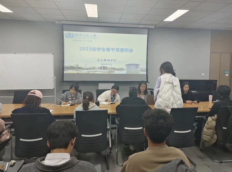 11月20日晚,音乐舞蹈学院2023级学生骨干例会在音乐楼二楼会议室召开,2023级兼职辅导员、全体学生骨干参与会议。会议由2023级专职辅导员尚晓丹主持。