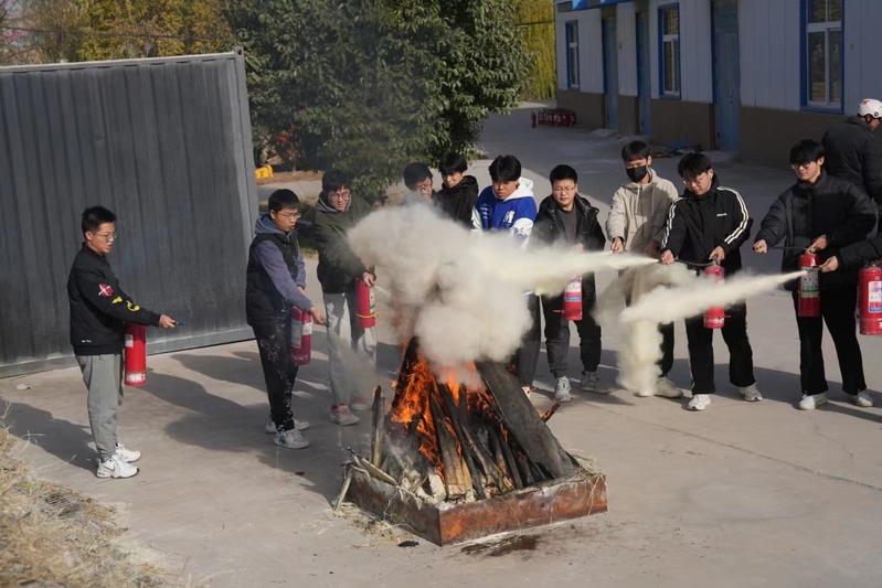 活动开始前陈艳浩副院长首先强调了此次消防演练活动的意义和重要性,要求参加演练的师生认真观摩学习,务必掌握扑灭初期火灾的能力。活动中,保卫处相关负责人向师生们详细介绍了干粉灭火器的构造原理及使用方法、防毒面具的佩戴方法、消防水枪的使用方法等,强调灭火器操作的动作要领并进行现场演示。观摩后,同学们分组使用灭火器体验真实场景灭火,经过规范操作和密切合作,将燃起的大火迅速扑灭,成功掌握了灭火器的使用的方法及扑灭明火的技巧。最后,瞿洪明强调安全工作重于泰山,希望大家一定要以此次消防演练活动为契机,提高安全意识、增强应急处置本领、提升应对突发事件的能力,并表示我院后续会继续认真开展消防安全系列活动,和校保卫处一道,为打造平安校园、建设文明校园履职尽责,做出应有的贡献。