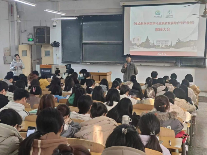 为进一步提升大学生综合素质,促进学生全面发展。12月5日上午,生命科学学院在文渊楼220开展本科生素质发展综合考评条例解读大会。生命科学学院本科生积极参加。会议由辅导员刘世学主持。
