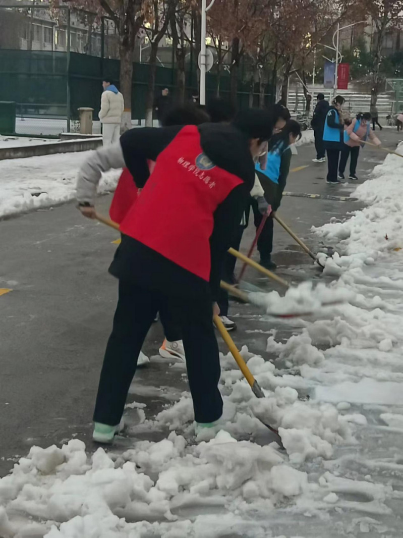 近日,随着气温骤降,校内道路积雪严重。为了营造一个安全整洁的校园环境,保障师生出行安全,12月14日下午,物理学院组织多名志愿者,在厚德南路组织开展积雪清扫志愿活动。