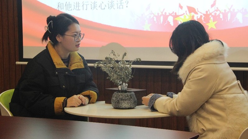 比赛通过案例分析和谈心谈话两个环节展开,在案例分析中,2020级辅导员方好好、2022级辅导员袁刚围绕案例中的问题本质、解决思路及实施方法进行阐述和问答,展现了自身在教育教学、心理咨询、职业规划方面的专业素养。在谈心谈话环节中,选手们充分运用所学理论知识,紧密结合辅导员工作内容和学生成长成才规律,认真倾听、理解学生需求,帮助学生解决实际问题,展现出强烈的责任心和人文关怀。郑园园从大赛要求、题型解读、解题思路、答题技巧等方面对备赛老师进行详细指导。她希望备赛老师要有坚持不懈的努力、勇往直前的勇气,对于比赛项目要精益求精、流程要精雕细琢,注意比赛和实际面试中的规则和要求,在表现形式上不断精进。