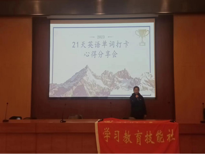 活动前期,学习教育技能社积极进行线上、线下宣传,吸引大量学生踊跃报名。活动过程中,同学们以个人为单位,采用多种学习方式,应用百词斩、不背单词、网易有道词典等app,每日完成至少30个的英语词汇背诵,并坚持每天通过线上QQ群进行打卡,同时由社团工作人员对打卡记录进行监督与汇总。最后,为巩固同学们的所学内容,学习教育技能社开展“21天英语单词打卡”心得分享会。同学们通过积极上台展示自己的学习成果,交流学习英语的技巧方法,互相分享21天英语学习打卡的收获和感悟,表现出对英语学习的高涨热情,营造了活跃的交流氛围。活动结束后,同学们纷纷表示收获满满,未来将持续进行英语学习,提高自身英语水平和英语学习能力。