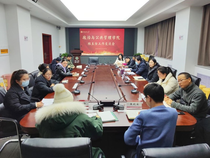 为进一步优化学院学生管理,提高教育教学质量。政治与公共管理学院于12月20日下午在学院517会议室举办班主任工作交流会。政治与公共管理学院党委书记赵红杰、党委副书记张瑾,全体班主任及各年级专、兼职辅导员参与其中,共同探讨如何更好地关心帮助学生成长成才。