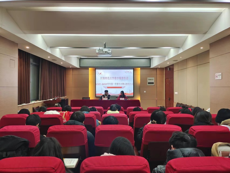 为持续推进学生会组织改革,增强学生会干部自我约束能力,12月21日晚,商学院于学院119报告厅召开2023-2024学年第一学期学生会作风警示教育大会。学院全体学生干部参与此次会议,会议由主席团成员朱凌萱主持。