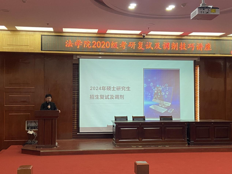 为继续推进考研工作,帮助考研学子从容面对考研复试与调剂,3月15日下午,学院于模拟法庭举办考研专业复试及调剂技巧讲座。学院硕士研究生导师、研究生秘书徐晓受邀担任主讲人,20级专兼职辅导员、全体考研学子参会。
