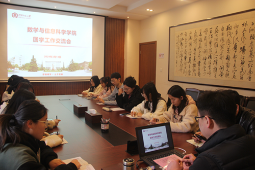 为进一步加强学生会队伍建设,提高团员干部队伍实干能力,推进新学期团学工作顺利开展,3月14日下午,数学与信息科学学院于数学楼207会议室召开团学工作交流会,院党委副书记王岩、团委书记高岩锋出席,相关部门负责人参加。