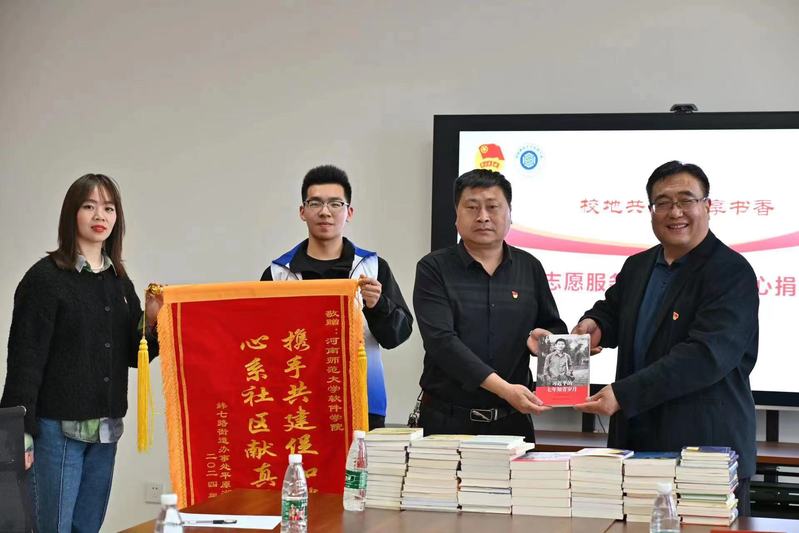 为丰富社区居民群众的精神文化生活,加强校地文化资源的共享,并促进社区居民实现便捷阅读,3月15日下午,河南师范大学软件学院联合平原湖社区于图书信息楼605共同举办了“校地共建,共享书香”爱心捐书仪式。