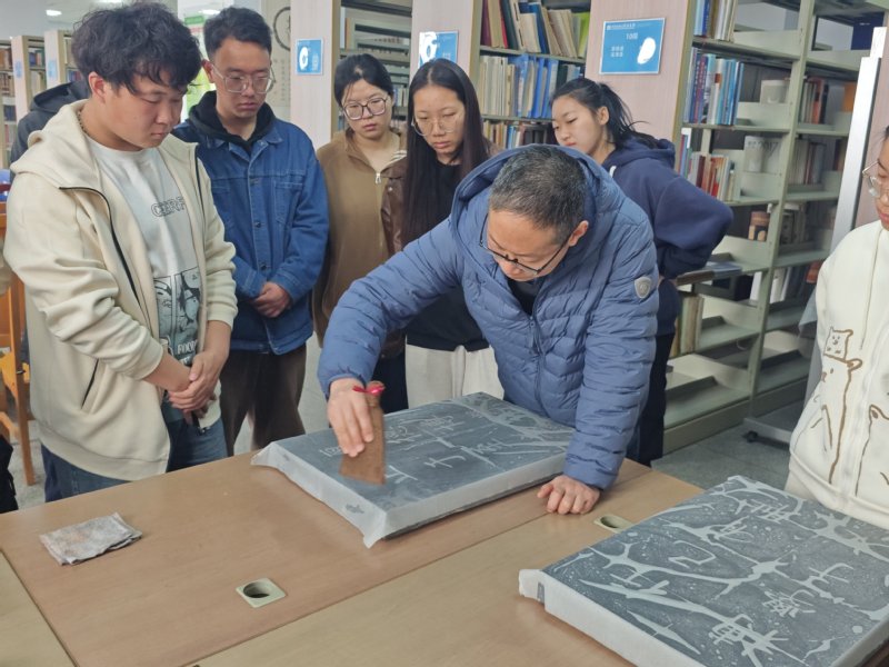 为进一步贯彻落实习近平总书记关于传承和弘扬中华优秀传统文化的指示,促进学生学以致用,将专业理论同实践相结合,3月25日上午,历史文化学院于图书馆四楼新乡地方文献中心开展了“金石传拓”实践学习活动。活动由学院副教授王仁磊主持,全体本科生积极参与。