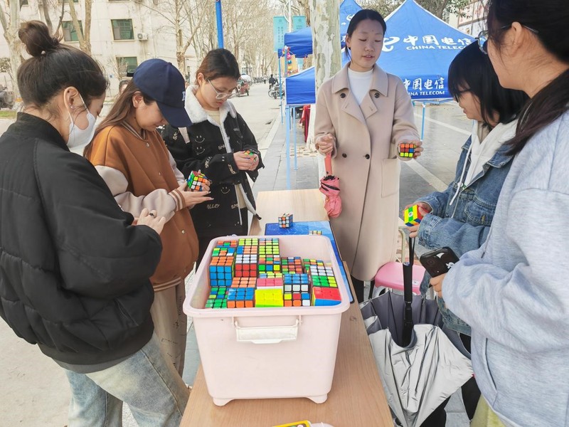 为增强学生对魔方的兴趣,提高魔方还原技术和水平,3月23日至3月26日,商学院Cube魔方社于万人餐厅西南角举办魔方交流会活动,此次活动面向河南师范大学全体学生,共计五百余人参加。