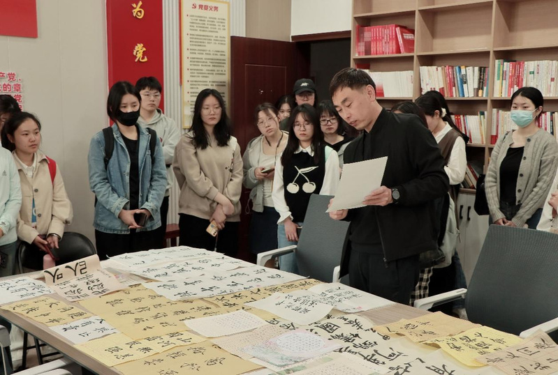 为培养学生书法技能,提高学生审美水平,4月9日下午,文学院在崇文楼二楼党建书屋举办“赓续百年强国梦,立德树人启新程”三笔字校赛作品指导活动。文学院教师李文博针对选手的初赛作品进行点评和指导,参赛选手积极参与本次活动。