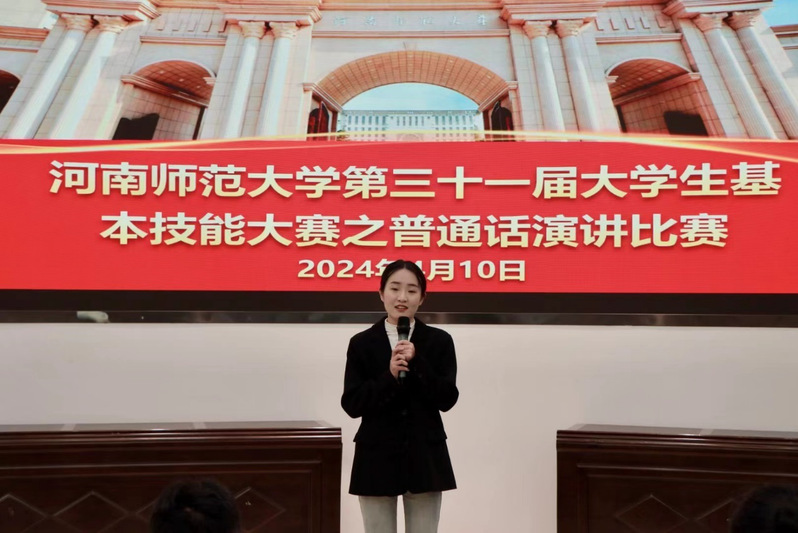 本次比赛的主题为“赓续百年强国梦,立德树人启新程”,参赛选手围绕主题依次进行演讲。评委根据评分细则,从发音、内容、表达和仪态四个部分进行打分。比赛过程中,每位选手有三分钟时间进行演讲展示,各具特色,呈现出一场场精彩的演讲。其中,2022级戏剧影视文学专业赵千姿讲述了自己参与河南师范大学百年校庆原创话剧的经历,描述出她心中“百年师大”的模样。2022级汉语言文学专业陈茜以“榜样故事”为主题,分享了她心中的榜样陶行知先生的故事,鼓励学习继承陶行知矢志报国、立德树人的伟大精神。比赛结束后,评委从演讲内容的逻辑性、情感表达的自然性和肢体语言的重要性等方面进行点评,对选手们的精心准备表示肯定,并就选手的选题、结合自身经历、演讲内容以及演讲姿态等提出意见和建议。