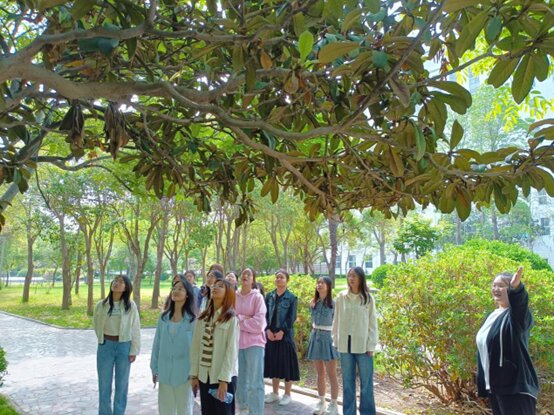 此次活动围绕美景欣赏、知识普及和互动问答三个环节。在美景欣赏环节中,史锦锦带领学生赏春花、观春水、沐春光,领略春意、享受自然。结合实际环境,史锦锦根据知识储备为学生进行玉兰花等植物的专业讲解,重点强调了它们的外形特点、生长环境、生态习性及文化意义,呼吁学生从自身做起,保护环境,维护生态多样性。知识普及后,学生结合相关学科知识积极提出问题,并与讲解员互动交流,进一步探讨专业知识。此次讲解,将理论与实践结合,在确保讲解生动有趣的前提下渗透专业知识,加深学生的理解。活动结束后,学生纷纷表示,通过实地观察和讲解,对植物的相关习性有了更直观地认识,也对生物多样性保护的重要性有了更深刻的理解。