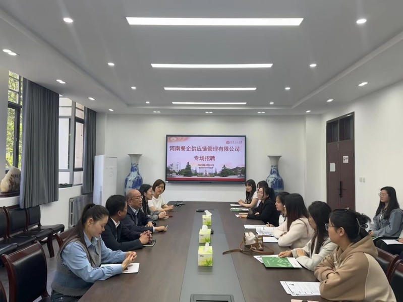 为促进学院与企业之间的互动与合作,搭建校企合作平台,提高毕业生就业质量,4月24日下午,河南餐企供应链管理有限公司于学院224会议室举办专场招聘宣讲会。学院党委副书记马淑明及2024届本硕毕业生参加此次会议。