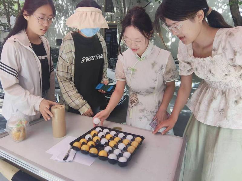 活动伊始,志愿者为现场参与者耐心、详细地介绍挑战赛规则。本次挑战赛以化学北楼为起点,沿途设置多个游戏站点,包含“听歌识曲”、“乒乓球五子棋”、“正话反说”、“龙取水”、“跳大绳”等共12个关卡。游戏过程中,参赛队伍需按照每次抽签决定的步数前进,并在每个摊位完成相应的挑战任务。“听歌识曲”环节里,参与同学们纷纷屏息凝神,认真倾听,有高手在前奏刚响起便一声拿下,也有“苦主”表示这实在超出知识范畴,绞尽脑汁也不得头绪;“跳大绳”环节,每个小队队长喊着响亮的口号,协助队员找准节奏,所有参与者齐心协力,互相配合,起跳动作整齐划一,共同跳过一个又一个绳。活动最后,队伍成员全部到达终点后,在工作人员的引领下有序离场。