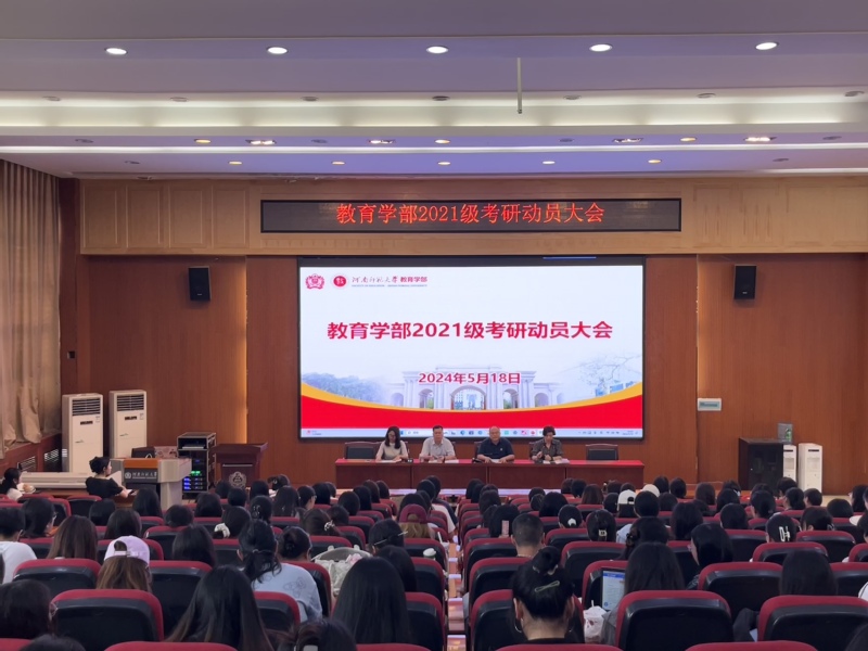 为推动优良学风建设,帮助同学们了解考研形势,明确考研目标,5月18日,教育学部在求是中楼302教室召开2021级考研动员大会,教育学部党委书记陈勇、部长罗红艳、副部长卜彩丽、各专业负责人、2021级班主任、2021级专兼职辅导员及2021级全体学生参加。会议由学部党委副书记康淑霞主持。