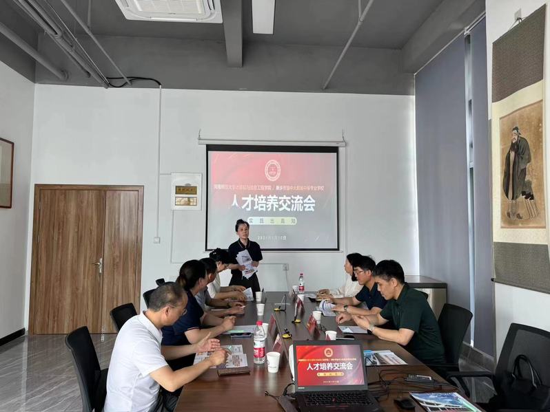 座谈会上,新乡慧中大数据中等专业学校校长袁小娟对学院一行到访表示热烈欢迎,并详细介绍了慧中IT集团的基本概况、项目简介等内容,表达了与学院进一步深度合作的意愿。瞿洪明代表学院对慧中IT集团前期友好合作和支持表示感谢,并介绍了学院概况、毕业生就业等情况。双方在人才培养、学生实习就业等进行了充分交流。双方均表示后续将进一步加强在联合实训、暑假小学期、毕业生职业规划培训等方面合作,实现互利双赢。