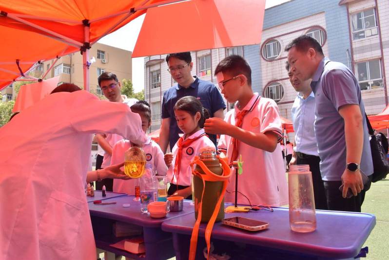 时值2024年全国、河南省、河南师范大学科技活动周举办之际,为响应国家进一步加强新时代中小学科学教育工作的号召,5月31日,化学化工学院河南省“i科普”化羽科创志愿服务团在河南师范大学附属小学操场开展了“魅力化学”科技推广日系列活动。