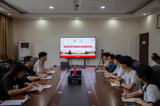 为提高班级管理队伍工作效率,切实解决班级管理中存在的问题,加强学生骨干的综合素质培养,6月13日中午,生命科学学院在生物西楼212会议室开展班长培训研讨会。生命科学学院党委副书记朱进、2023级专职辅导员刘世学以及各年级班长参与会议。