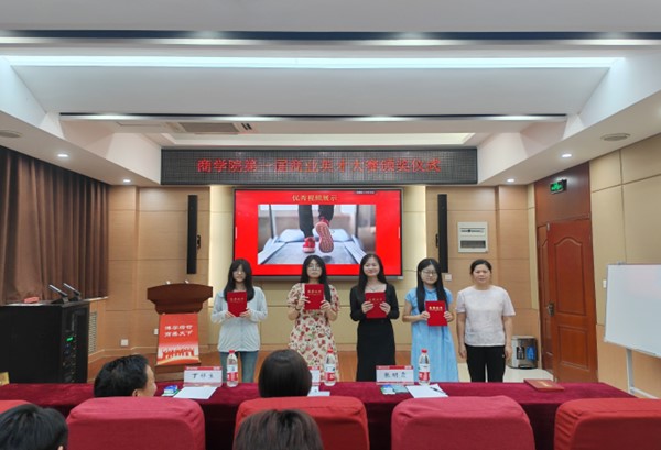 近日,第一届“邦尼杯”商业英才大赛圆满落幕。为巩固大赛成果,及时进行表彰奖励和经验总结,进一步加强学生商业素质教育,6月23日晚,商学院于学院119报告厅举行第一届“邦尼杯”商业英才大赛颁奖典礼。大赛指导教师侯明利、张明霞、丁祥生及商学院部分学生参加仪式。