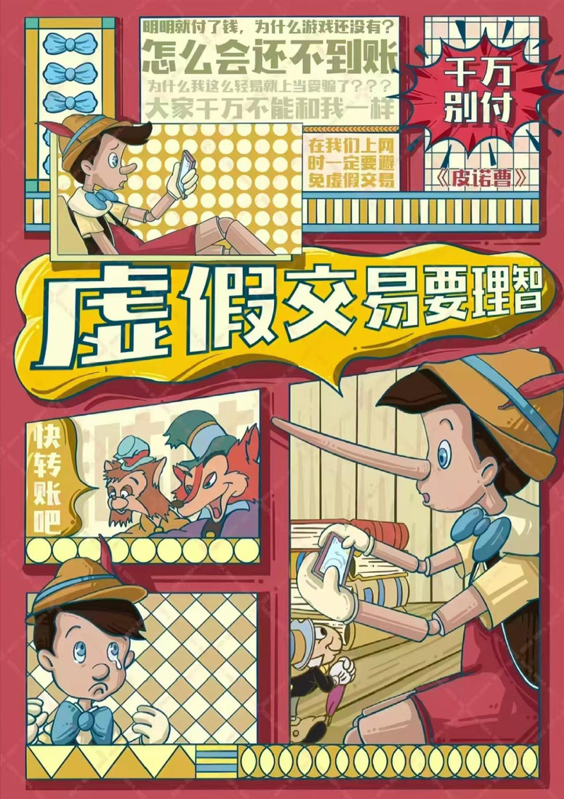 活动期间,学院学子深入研究,广泛收集资料,细致分析电信网络诈骗的各类手法与防范策略,力求创作出内容丰富、教育意义深远的反诈海报。从素材筛选到设计构思,每一步都体现了创作者的严谨态度与创新精神,展现出学院学子在反诈宣传领域的独到见解与创意才华。同学们运用精炼而有力的文字,逐一剖析电信诈骗的常见手法,提醒广大学子警惕各种伪装下的诈骗陷阱,维护个人财产安全。一幅幅海报画面,生动展现出电信网络诈骗的演变过程与防范措施,直观呈现诈骗手法的复杂性,有效提升同学们对电信诈骗的警觉性和防范意识。活动结束后,负责人秉持公平公正原则,最终评选出一等奖1名,二等奖3名,三等奖3名。其中,2022级财务管理专业李曼设计的主题海报,以童话人物皮诺曹为载体,以“理智交易”为主题,构思精巧、色彩鲜明,在众多作品中脱颖而出,获得评委一致称赞。