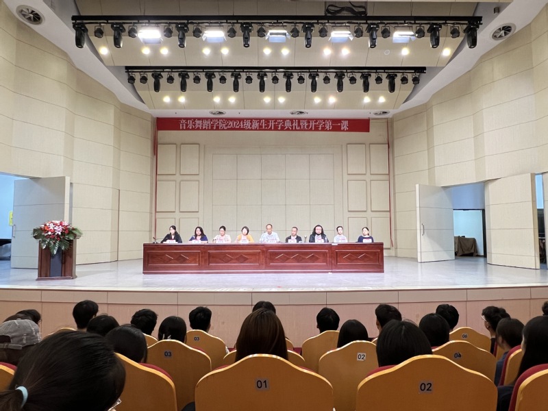 9月10日下午,音乐舞蹈学院2024级新生开学典礼在音乐厅隆重召开。学院党委书记万运京、院长张伟出席。院领导班子其他成员、各教研室主任、教师代表、专兼职辅导员以及2024级全体新生参加了典礼。典礼由院党委副书记滕梁莹主持。