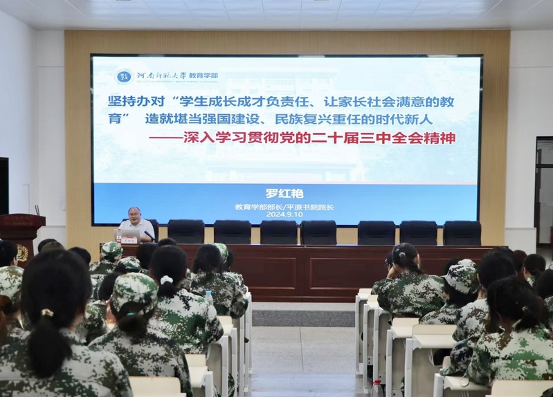 为深入学习贯彻党的二十届三中全会精神,加强新生的思想引领,9月10日上午,教育学部在学苑餐厅三楼东报告厅为2024级新生开展思政第一课。教育学部部长罗红艳担任主讲人。