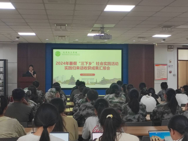 为提高学生的社会实践能力,深化育人成果,9月18日中午,化学化工学院在化学北楼五楼会议室召开了2024年暑假“三下乡”社会实践活动实践归来话收获成果汇报会。化学化工学院团委书记曹锟、创新创业工作秘书张艳、各实践团队代表及百余名学生共同参会。