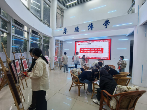 七十五载强国路,岁月悠悠华夏情。为庆祝中华人民共和国成立75周年,弘扬爱国主义精神,加强爱国主义教育,厚植学生爱国情怀,9月30日,计算机与信息工程学院在学院一楼展厅举办“传承剪纸文化 共庆祖国华诞”剪纸作品展,旨在通过剪纸这一传统艺术形式,展现祖国的发展历程和辉煌成就,同时庆祝新中国的华诞,弘扬中华优秀传统文化。本次活动共吸引了近300名师生前来观展。
