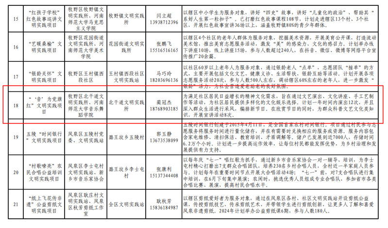 近日,新乡市文明办正式公布2024年文明实践志愿服务精品项目名单,音乐舞蹈学院“音为党旗红”文明实践项目成功获评精品项目。