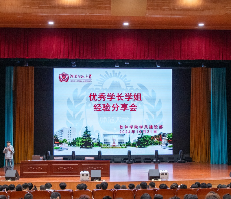 为指导2024级新生做好学业规划,尽快适应大学生活,10月21日晚,软件学院学生会学风建设部于平原湖校区第一报告厅举办“传经验之炬,明未来之路”学习经验分享座谈会,会议由学院高年级优秀学长学姐为主讲人,400余名新生参与。