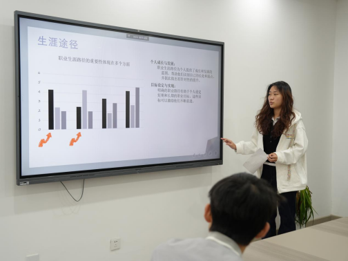 本次大学生职业规划大赛分为初赛和复赛两轮。初赛为线上个人职业规划PPT制作,经过激烈角逐,最终有九名同学在初赛中脱颖而出进入复赛。复赛由个人汇报与自由答辩两个环节组成。比赛现场气氛活跃,选手们精神饱满、逻辑严谨。在个人汇报环节,选手对自己的职业规划有着深刻独到的见解,他们分别从自我认知,职业规划,计划实施,评估调整等方面展开了介绍,PPT内容生动、主题鲜明、设计新颖,生动地展示了各自的职业梦想和未来规划,准确地把握了职业规划设计的核心和关键,展现了良好的职业生涯规划意识、竞争意识和创新意识。在自由答辩环节,评委老师针对选手个人情况进行提问,各位选手赛中认真回答评委提出的问题,凸显清晰的逻辑思维,得到了评委老师的肯定以及指导意见。