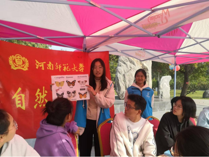 为丰富校园文化生活,增强学生的动手实践能力,10月26日上午,由河南师范大学校艺术教育委员会办公室主办,生命科学学院青年志愿者协会、自然传奇协会承办的“探秘生命之美,邂逅彩翼奇缘”蝴蝶标本制作活动在中心花园校训石广场举办,生命科学学院党委书记宋京双、党委副书记朱进、校艺委声乐副教授张妹姝、生命科学学院团委副书记马静潇亲临现场指导。