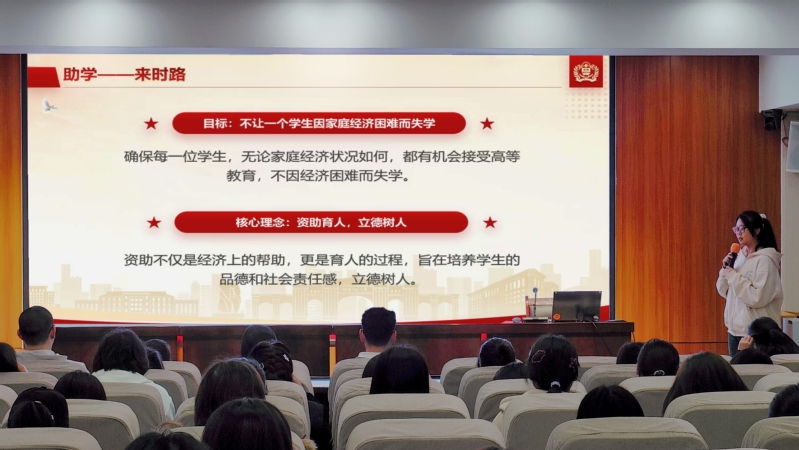 2021级教育技术学专业刘丹阳、2022级教育技术学专业张潇淼、2023级心理学专业孙小雯分别作为国家奖学金、国家励志奖学金获得者,对国家和我校的“奖助贷勤免补”系列资助政策进行宣讲,介绍了不同资助工作的申请条件、奖励对象等相关内容,帮助同学们深入了解各项资助政策。她们还结合各自的真实经历,讲述了国家资助政策对自己顺利完成学业、身心健康成长带来的深远影响,并表示未来会继续努力成为更优秀的自己,并将这份感恩之情传递下去。她们的励志故事深深感染了现场的同学们。大家纷纷表示,参加此次宣讲活动,不光进一步了解了国家和学校资助政策,也激发了自己刻苦奋斗、努力拼搏的决心和斗志。