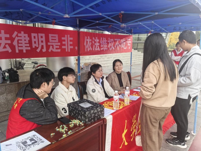本次活动分别于东区模拟法庭北侧和西区万人餐厅西南角设置宣传咨询点与服务站。新乡市司法局法律援助中心工作人员带领志愿者围绕“校园贷、食品安全、电信诈骗、校园欺凌、消费者权益、大学生兼职”等方面,结合典型案例,用通俗易懂的语言,图文并茂的形式,深入浅出地讲解了校园欺凌、电信诈骗、非法集资的概念、表现方式或常见手段,犯罪后果、严重危害以及遇到自身突发外来“险情”如何脱身或自救,如何规避电信诈骗、非法集资等内容。志愿者还为师生讲解了《中华人民共和国刑法》、《中华人民共和国治安管理处罚法》、《消费者权益保护法》等相关法律知识,引导教育学生做好防电信诈骗,规避非法集资陷阱,并提醒学生清醒认知“所有诈骗的最终目的就是转账”,如将银行卡、身份证、手机卡及各种支付、社交账号等借给他人使用,就有可能构成帮信罪,从而有效预防电信诈骗。此外,活动还设置了趣味游戏环节,分为法律知识问答、法律知识分类、法律灯谜竞猜三部分,众多同学踊跃参与。在本次普法活动中,同学们纷纷表示,进一步巩固了法治知识,有效提高了对电信网络诈骗的防范意识,有助于更加深入地学习法律知识、感悟法治精神。