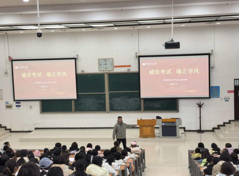 为严肃期末考风考纪,强化学生诚信应考的思想自觉与行动自觉,营造公平公正、求真务实的备考氛围,1月13日至15日,历史文化学院以年级为单位开展诚信考试主题教育活动。活动由各年级专职辅导员主持,全体本科生、研究生参与其中。