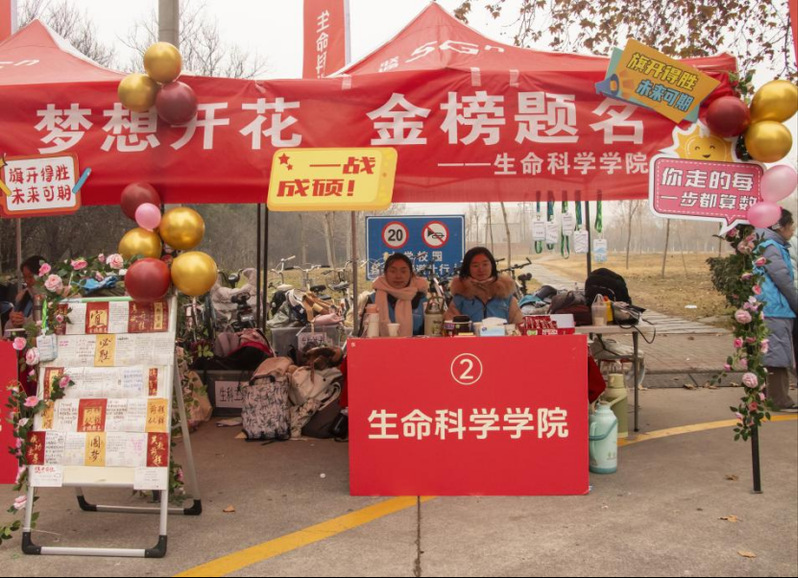 为了保障考研工作的有序进行,为考研学子提供全面的帮助,物理学院于12月21日至23日在考研地点旁架设帐篷作为考研爱心服务站,并招募志愿者为考研学子提供服务。