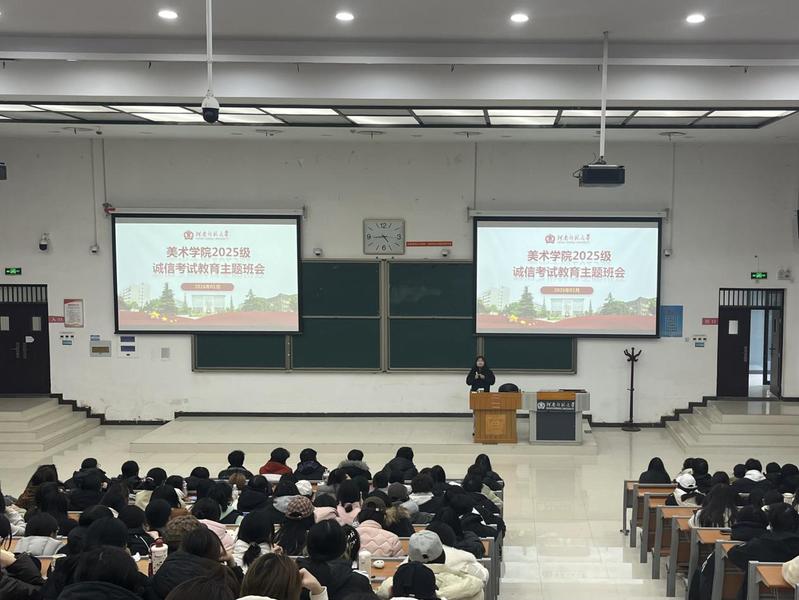 为进一步严肃考风考纪,强化学生的诚信考试意识,营造风清气正的考试氛围,1月14日,美术学院在文昌楼127室开展诚信考试教育主题班会。会议由辅导员罗爽主持,全体2025级本科生参会。