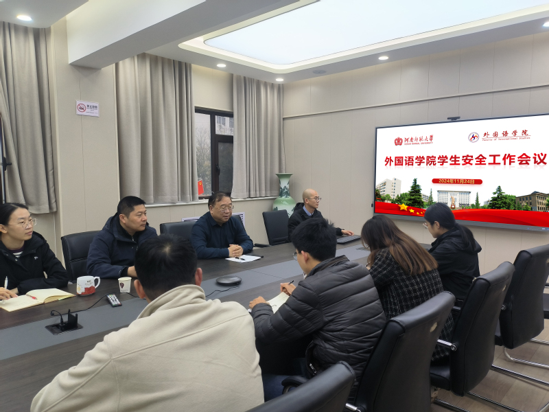 为深入学习贯彻习近平总书记关于安全稳定工作的重要讲话精神,切实筑牢校园安全防线,11月24日,外国语学院在学院会议室召开学生安全工作专题会议,院党委书记赵成福、院党委副书记曹崇及学院全体专兼职辅导员参加会议。