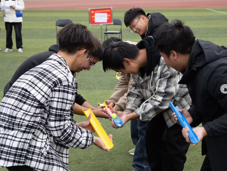 活动特别设计了一系列兼具趣味性与挑战性的游戏项目。在“一圈到底”游戏中,参与者们手拉手围成一个封闭的圆圈,把呼啦圈套在手臂上,依次穿过每个人的身体,现场气氛热烈;“六人七足”则考验了团队成员之间的默契与合作,大家齐心协力,争分夺秒冲向终点;“背对背拥抱”要求队员们手牵手,肩并肩地运送气球并进行接力赛跑,体现了团队间的相互信任与支持;而在“水到渠成”游戏中,同学们利用“竹竿”接力运球,展现出智慧与技巧的完美结合。活动结束后,学生会的工作人员为比赛成绩最佳的六个宿舍小组颁发奖品。活动组织成员王明威表示:“此次活动让同学们在欢乐中增进友谊,感受到了宿舍大家庭带来的温暖和支持。”