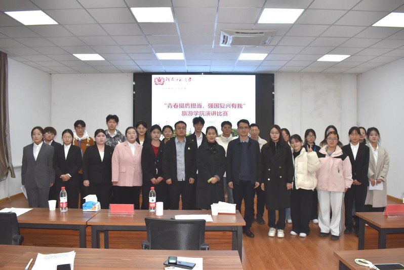 为弘扬爱国主义精神,增强青年学生的国家认同感与民族自豪感,11月26日下午,旅游学院在琢玉楼行知大讲堂举办以“青春挺膺担当,强国复兴有我”为主题的青年演讲大赛。三位专业课教师担任评委,学院本科生参加。