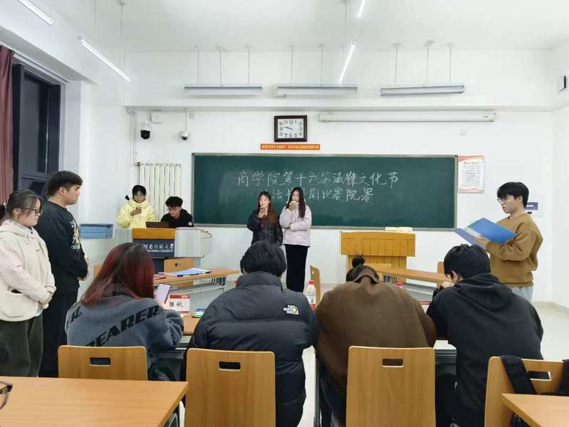 为普及法律文化知识,增强学生的法治观念,11月23日晚,商学院于文昌楼324教室举办 “法韵流芳,律启华章”法治情景剧活动。学院学生踊跃参加,活动反响热烈。