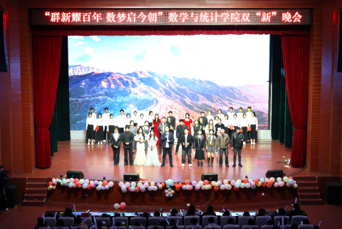 12月8日晚,数学与统计学院于河南师范大学附中西校区大礼堂举办“群‘新’耀百年,‘数’梦启今朝”双“新”晚会。院党委书记姜良,副院长黄广月,校人力资源部副部长、教师中心副主任董乐,党委学工部副部长张金金,俊甫书院党委副书记刘宁,院党委副书记王岩出席,师生代表共600余人参加。