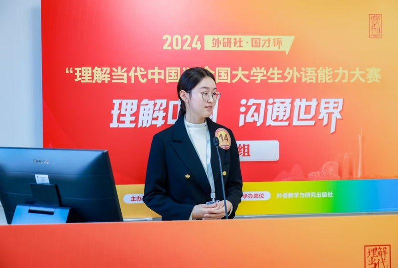 近日,2024“外研社·国才杯”“理解当代中国”全国大学生外语能力大赛(多语种组)全国总决赛在北京外国语大学顺利落下帷幕,我校国际教育学院2022级法语专业郜琳源在比赛中斩获银奖。