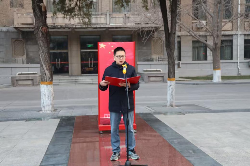 2024级研究生代表娄本发同学以《以青春之名,绘山河画卷》为题进行演讲,他结合自身的学习和成长经历,分享了如何在新时代的潮头做“敢教日月换新天”的践行者的感悟和思考。2023级本科生代表高凤岺、王子乐同学朗诵《这盛世如你所愿》,一段跨越时空的对话,将历史与现实连接,铿锵有力的气势、充沛饱满的感情,激发了同学们爱国爱家的情怀。