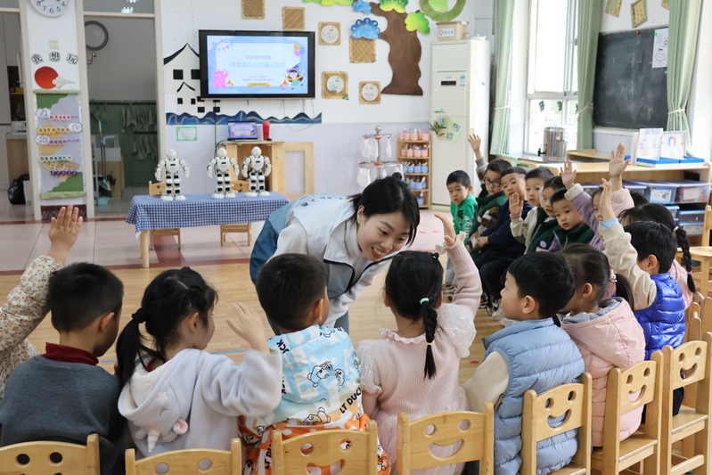 为激发幼儿对人工智能(AI)的兴趣,3月12日,教育学部“智教先锋”志愿服务队师生党员走进河南师大附属幼儿园,开展了一场主题为“探索AI魔法世界--会跳舞的机器人”的AI科普活动。