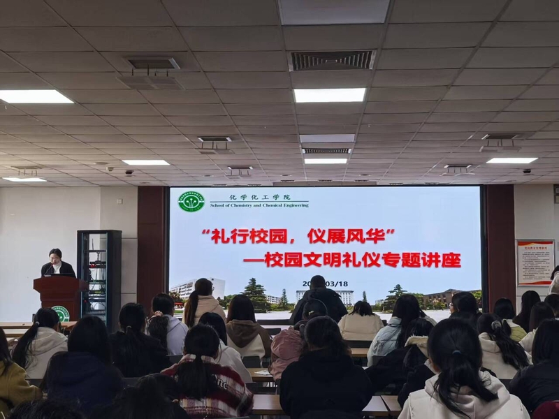 为提升学生的文明礼仪素养,营造文明和谐的校园氛围,2025年3月18日中午,化学化工学院在化北五楼会议室举办了“礼行校园,仪展风华”校园文明礼仪专题讲座。本次活动由学院第二课堂管理中心、西八“一站式”学生社区主办,特邀2023级辅导员邢凯老师担任主讲,与2023级、2024级本科生共同参与。